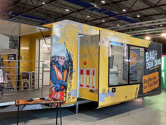 Durch Teamarbeit und abwechslungsreiche Aufgaben erhalten die Schülerinnen und Schüler spielerische Einblicke in BauBerufe, notwendige Fähigkeiten und die Digitalisierung der Branche. Der BauTrailer bietet Platz für bis zu 16 Personen und ist von März bis Oktober buchbar. Alternativ steht ein betreuter Messestand zur Verfügung.